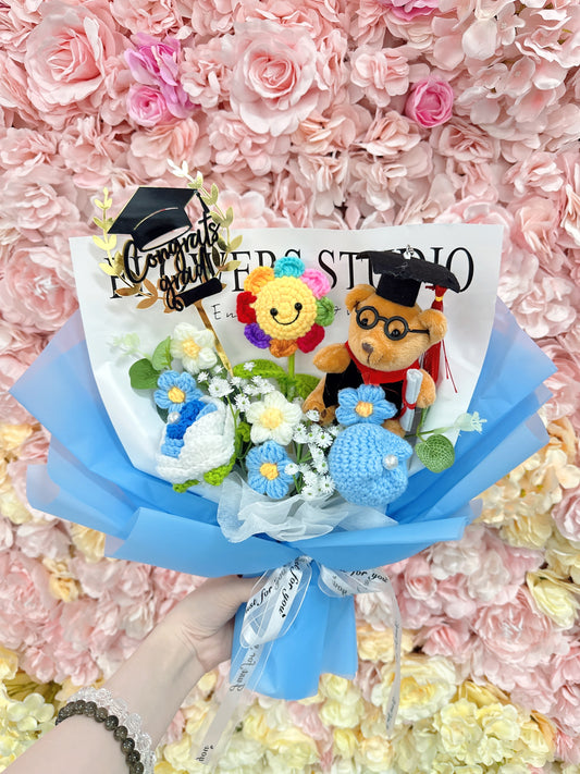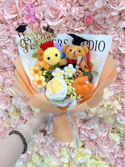 彩虹笑臉太陽花|畢業熊公仔花束|畢業花束|畢業禮物|畢業公仔|榮休升職 Farewell 散水禮物|針織花束|幼兒園 小朋友畢業花束|網上訂花|觀塘花店