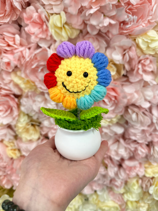 彩虹笑臉 太陽花 向日葵|針織小盆栽|畢業花束|畢業禮物|針織花束|企業禮品訂製|學校團體小禮物|公司紀念品|廣告贈品|禮品訂製|網上訂花|觀塘花店