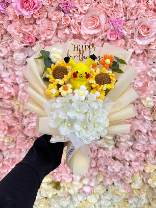 比卡超| Pikachu|手工針織公仔|2024人氣動漫卡通角色IP款|鎖匙扣掛件|畢業花束|畢業禮物|畢業公仔花束|針織花束 編織花束 鈎織花束|人手製作|網上花店|觀塘花店