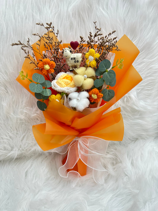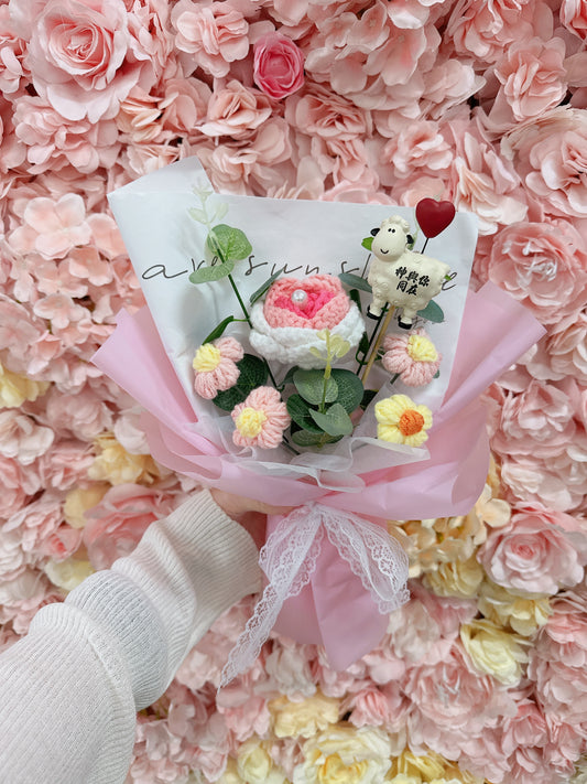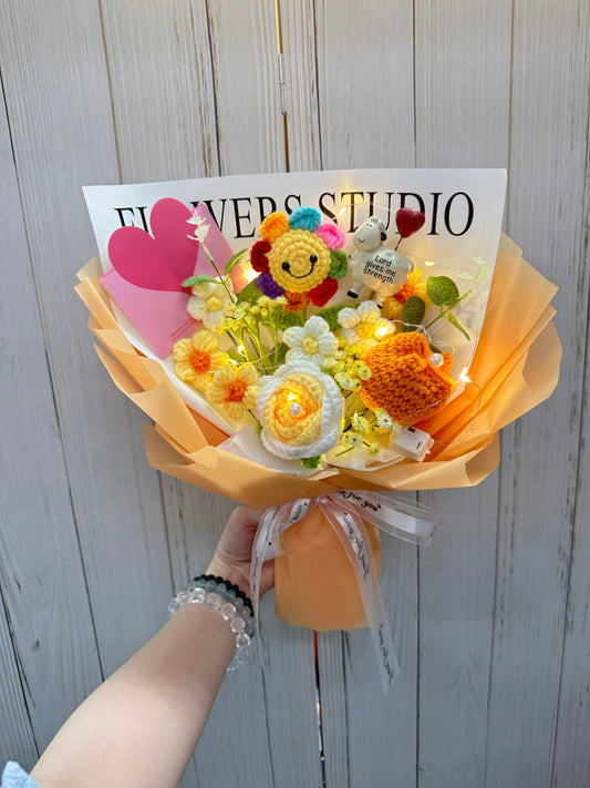 淺粉色|畢業女仔頭|太陽花|向日葵|畢業花束|畢業禮物|針織花 編織花束|人手製作|觀塘花店
