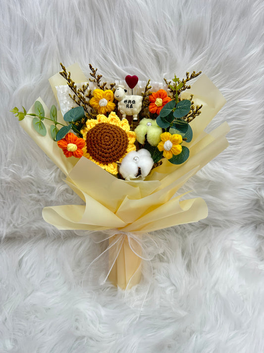 熱賣款🔥五朵大太陽花 向日葵|畢業花束|畢業禮物|畢業公仔|針織花束送老師 送學生 送同學禮物🎁|手作花束|網上花店|觀塘花店