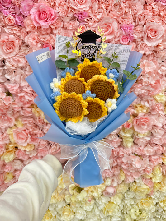 5朵太陽花|向日葵|畢業花束|畢業禮物|針織花 編織花束|人手製作|即日送花|網上花店|觀塘花店