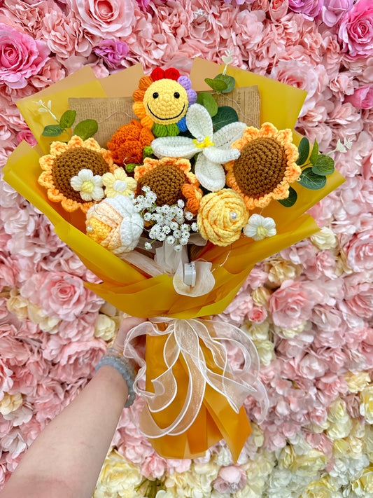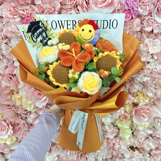 XL Size|針織花束|彩虹微笑太陽花|人手製作|畢業花束|觀塘花店