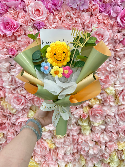 多色可選💐 笑哈哈太陽花|畢業花束|畢業禮物|針織花束 編織花束|幼兒園 小朋友畢業花束|人手製作|觀塘花店