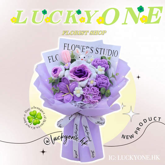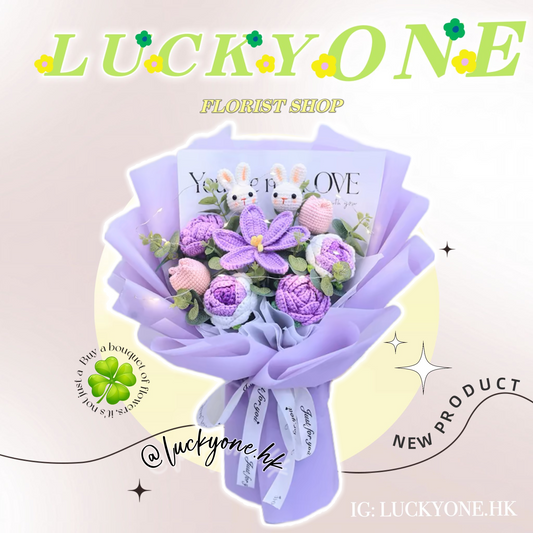 多色可選💐 兔仔|大百合|玫瑰|針織花束|人手製作|觀塘花店