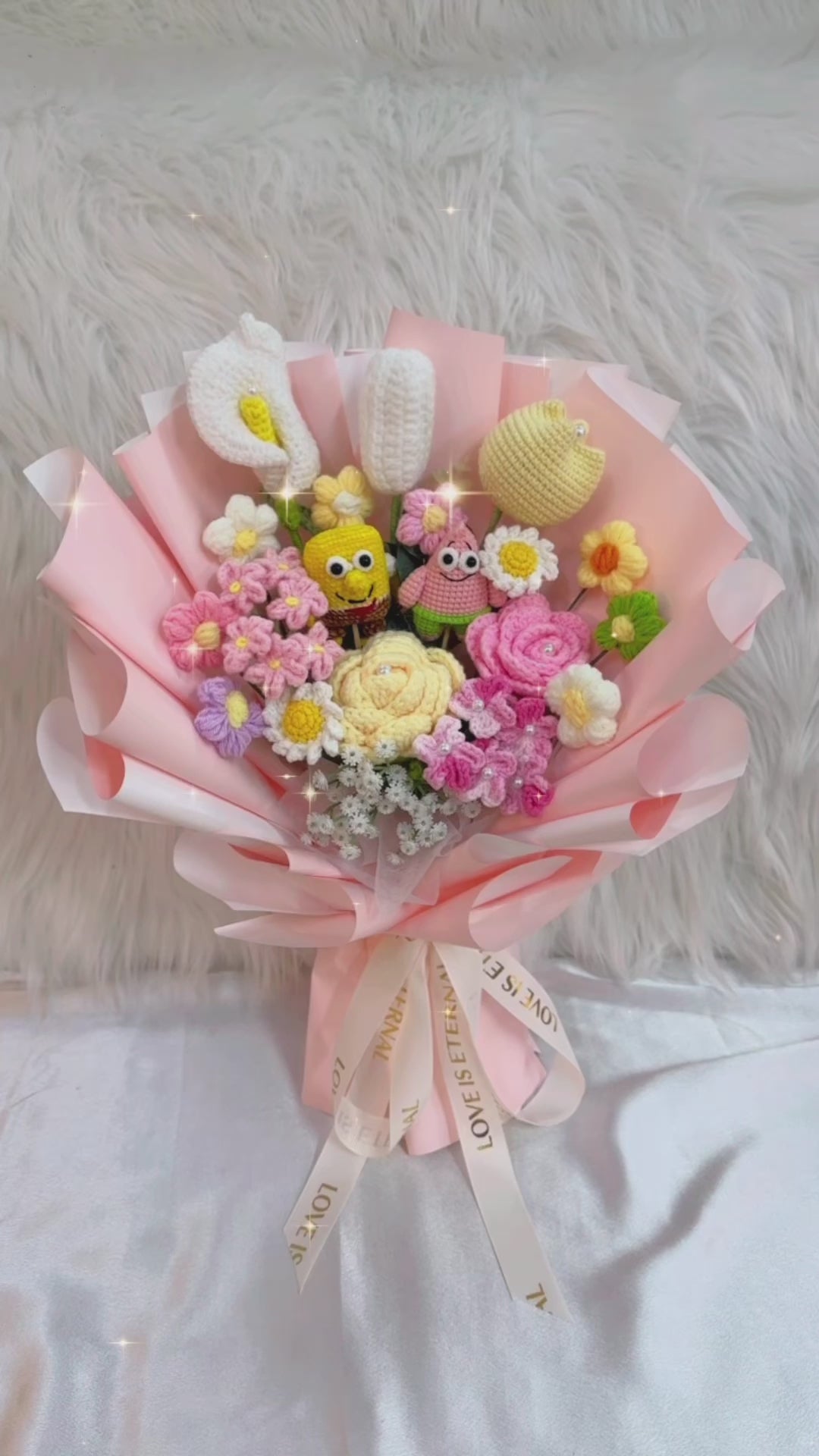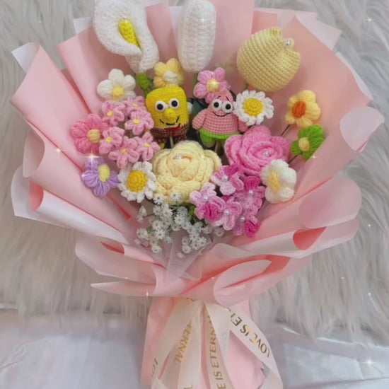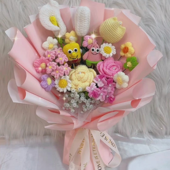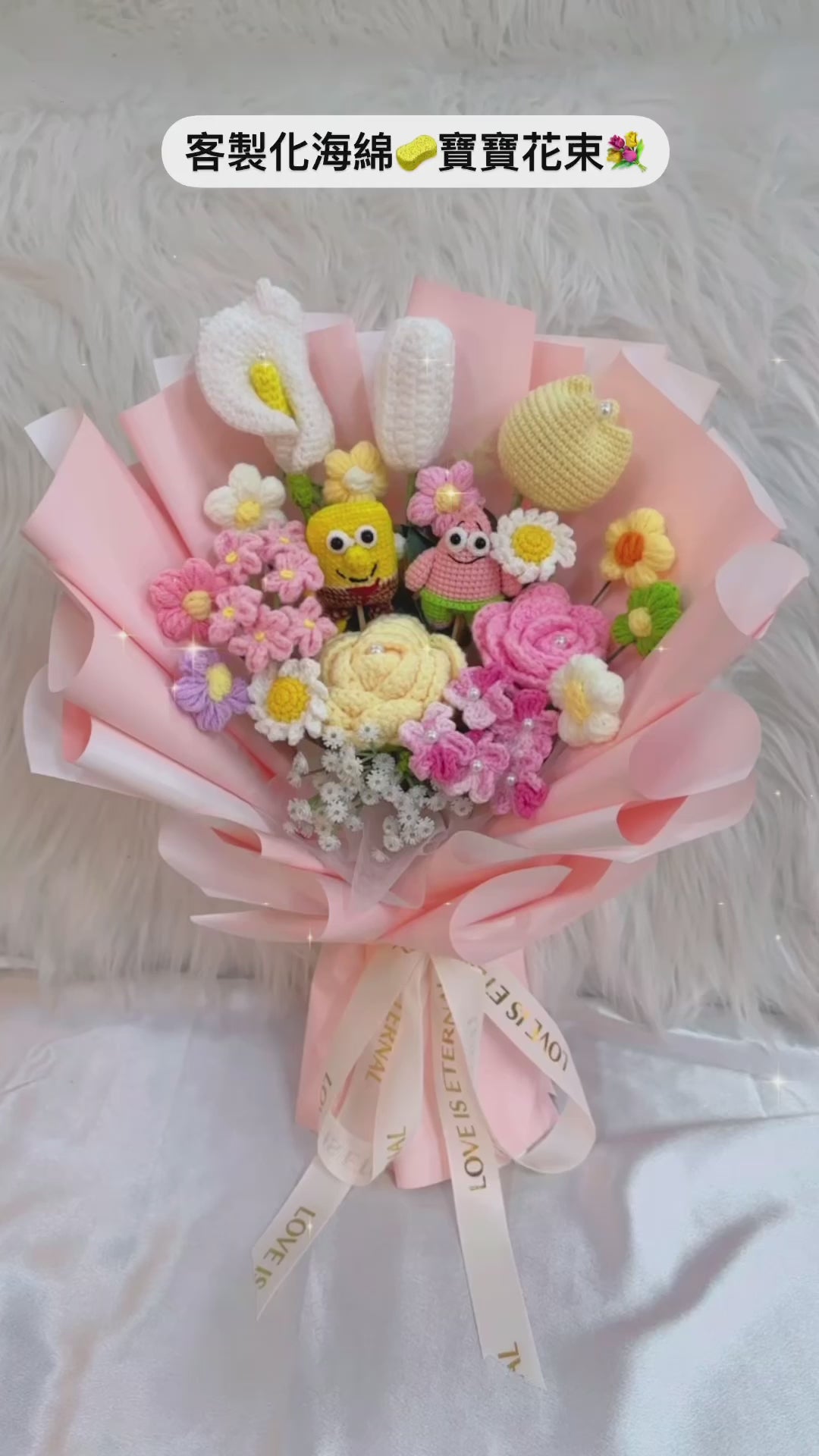 《海綿寶寶》SpongeBob 派大星 SquarePants 公仔花束|畢業公仔花束|畢業花束|畢業公仔花束|網上訂花|針織花束|生日花束|週年紀念日花束|情人節花束|Farewell花束|即日送花|香港花店|觀塘花店