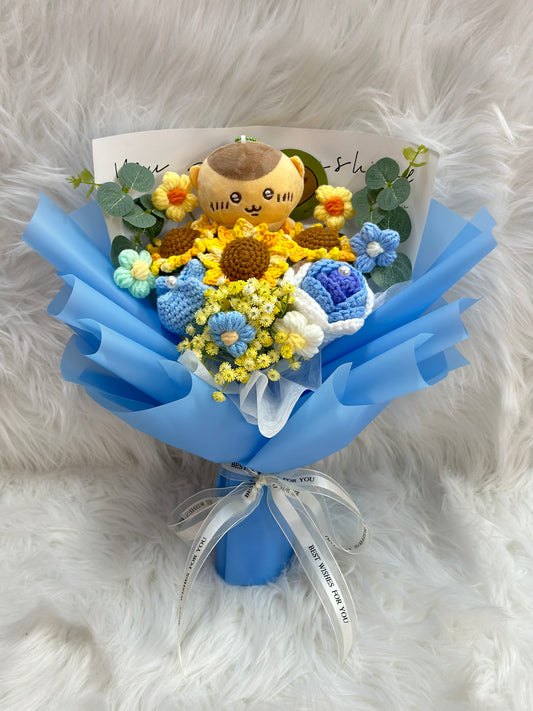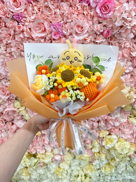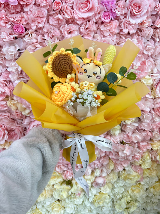 「Chiikawa 全家福一家親」吉伊卡哇公仔花束大集合| 小八兔子烏薩奇+小八貓+吉伊卡哇+飛鼠+栗子饅頭 5隻角色一家親公仔花束|畢業花束|向日葵|網上訂花|針織花束|生日花束|週年紀念日花束|情人節花束|感謝Farewell花束|即日送花|香港花店|觀塘花店
