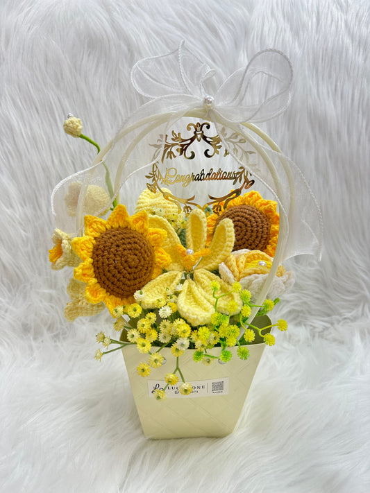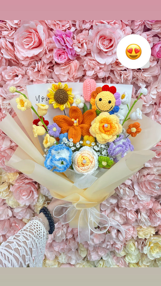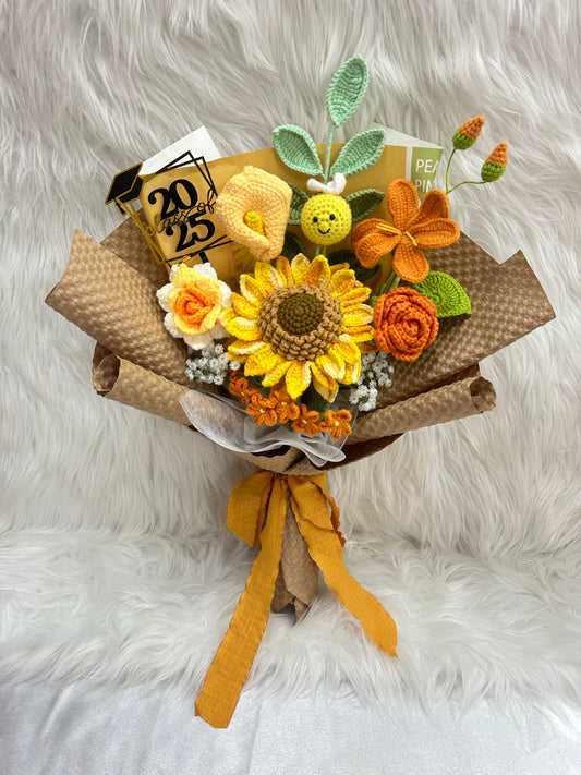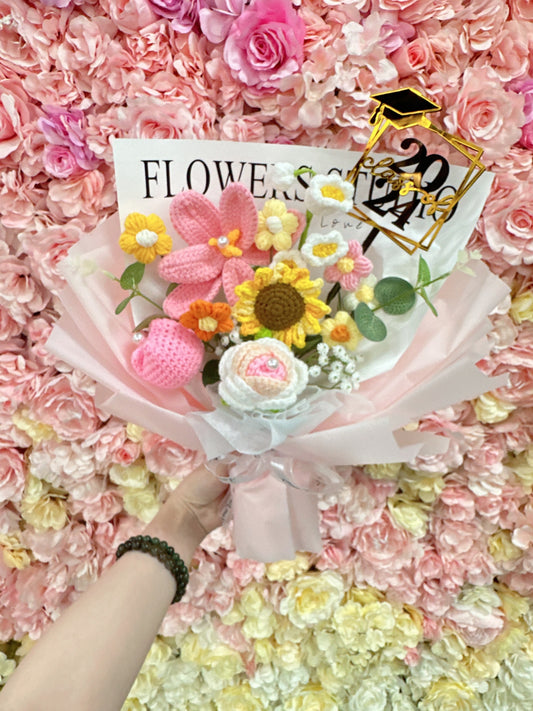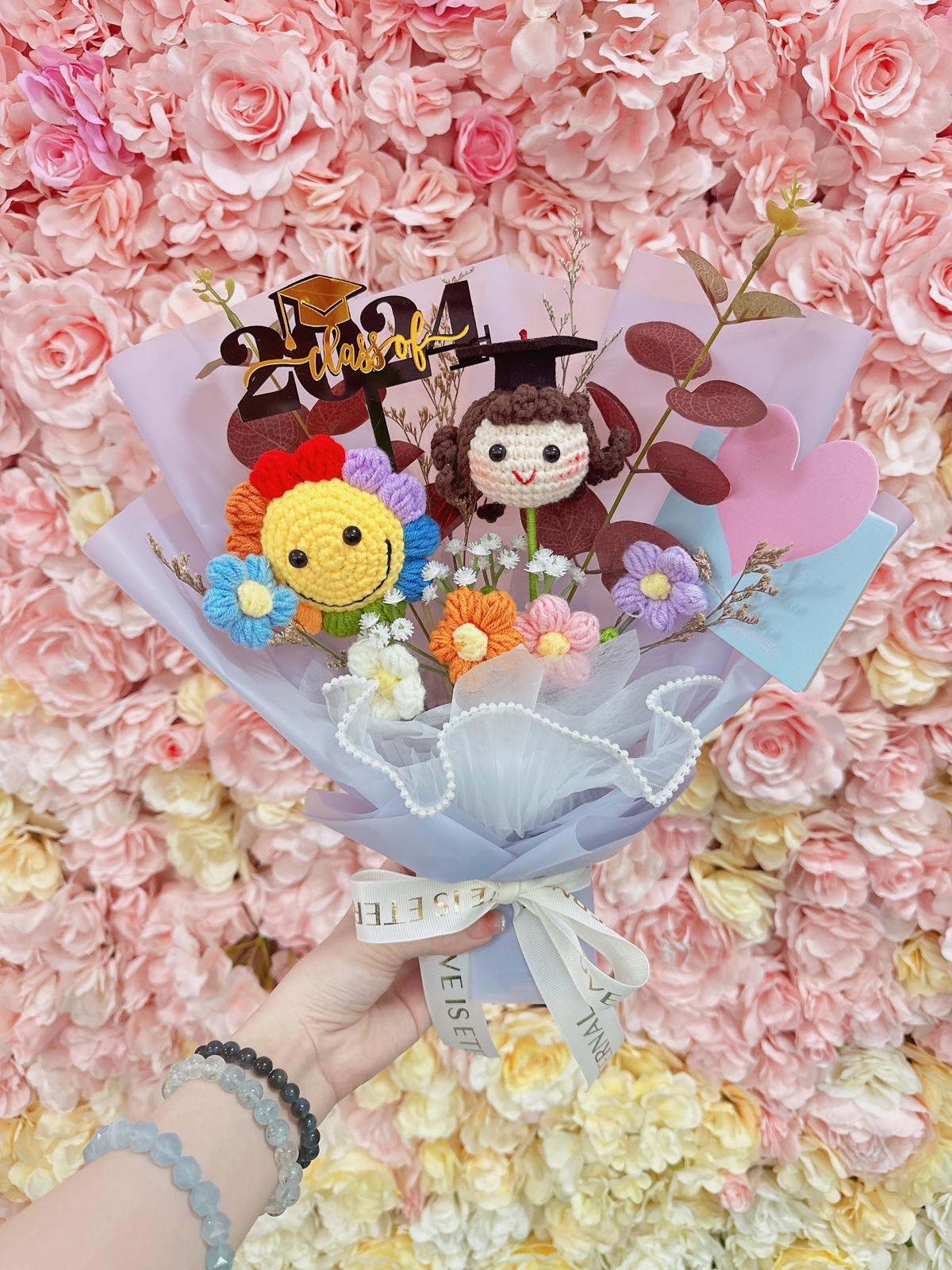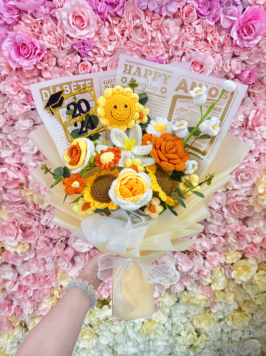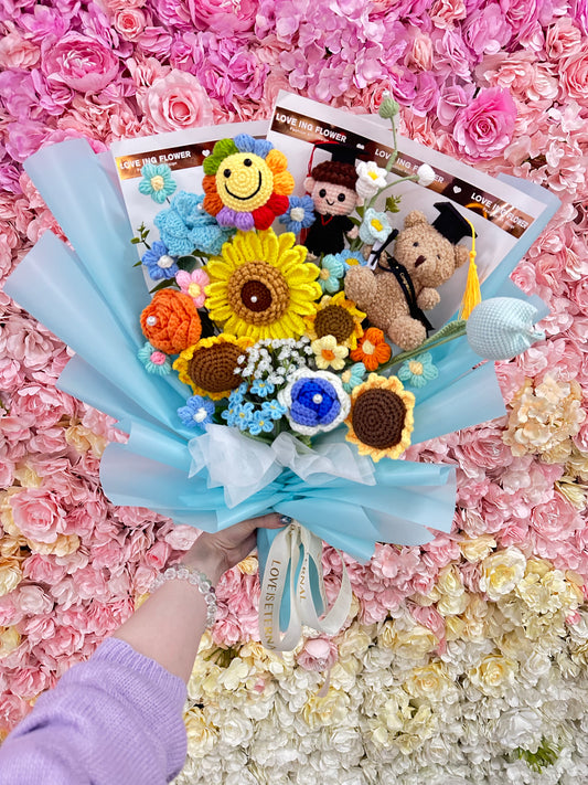 多色可選💐 笑哈哈太陽花|畢業花束|畢業禮物|針織花束 編織花束|幼兒園 小朋友畢業花束|人手製作|觀塘花店