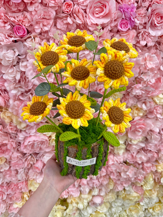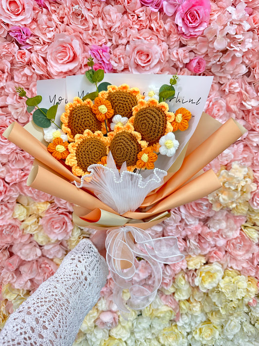 熱賣款🔥五朵大太陽花 向日葵|畢業花束|畢業禮物|畢業公仔|針織花束送老師 送學生 送同學禮物🎁|手作花束|網上花店|觀塘花店