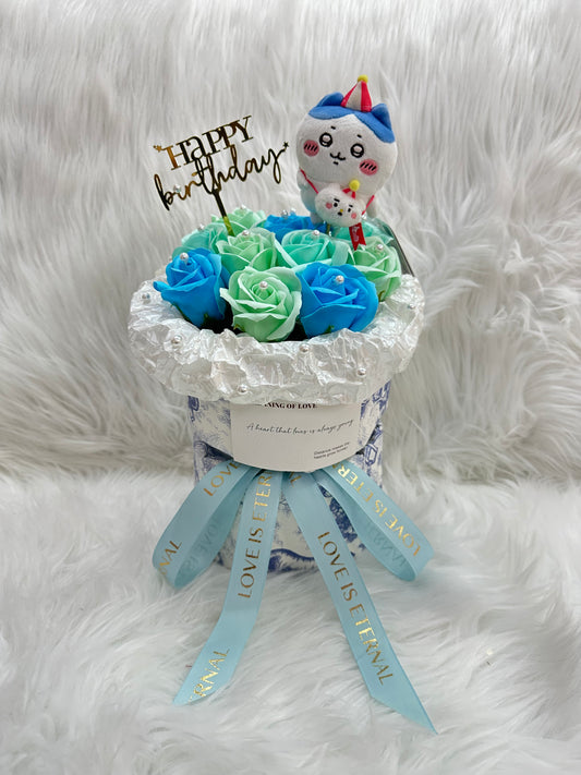 Chiikawa 生日花束(吉伊卡哇) 小八公仔花束|Hachiware 小八貓 / 八字貓公仔花|情人節花束|情人節花 |生日禮物|畢業花束|2025畢業花|週年紀念日花束|情人節禮物|即日送花|針織花束|送女朋友禮物|平價花店|網上花店|網上訂花|香港花店|觀塘花店