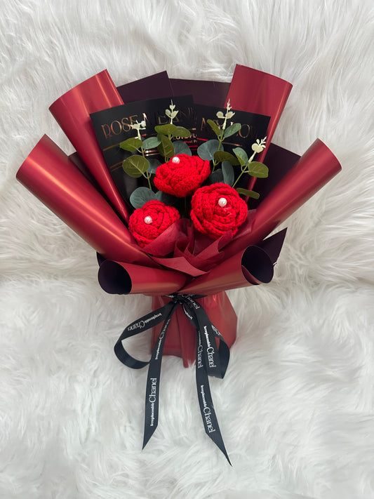 多色可選💐 心型圖案|玫瑰|針織花束|人手製作|觀塘花店