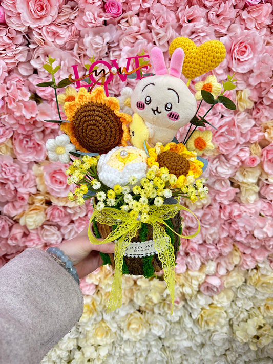 Chiikawa情人節公仔盆栽 (吉伊卡哇)|兔子 兔哥 烏薩奇公仔木桶擺設|2025 情人節花束|情人節玫瑰花束2025|情人節花 |生日禮物|畢業花束|週年紀念日花束|情人節禮物|畢業花束|即日送花|針織花束|送女朋友禮物|平價花店|網上花店|網上訂花|香港花店|觀塘花店