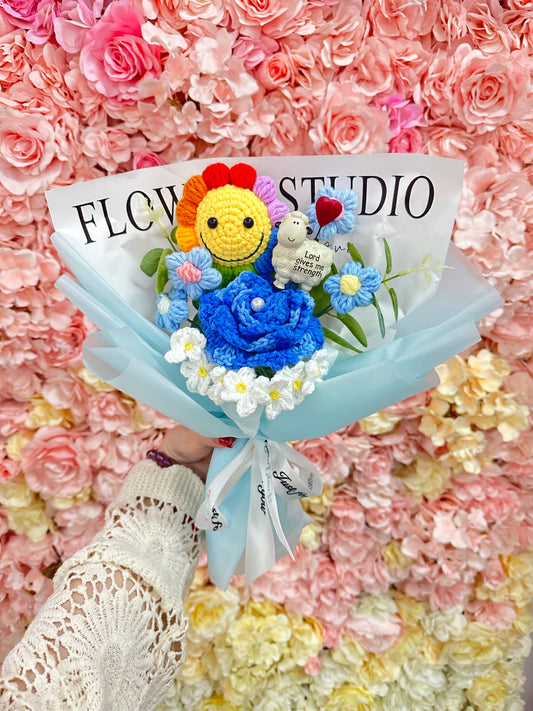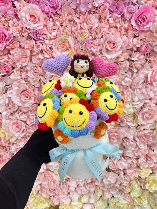 💐女仔生日花🌈彩虹笑臉太陽花|客製公仔花|畢業花束|針織花束|生日花束|週年紀念日花束|情人節花束|感謝Farewell花束|網上訂花|即日送花|香港花店|觀塘花店