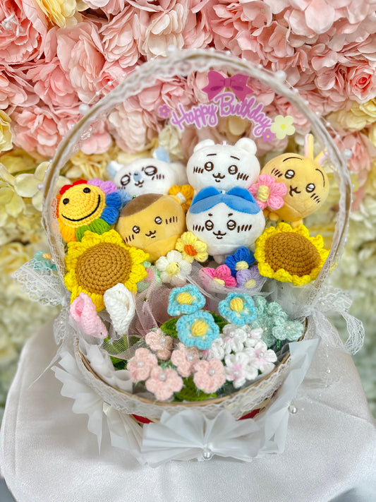 全港首創 —「Chiikawa的秘密花園」公仔生日花籃|祝賀花籃|開張誌慶花籃|小八貓 / 八字貓 兔子 烏薩奇 小可愛公仔花籃| Chiikawa 吉伊卡哇|結婚禮物|生日禮物|畢業花束|入伙禮物|喬遷花籃|女朋友 老婆情人節禮物|百日宴禮物|網上花店|香港花店|觀塘花店