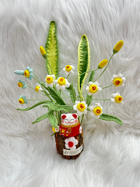 🧧招財貓水仙盆栽| 2025居家擺設|開張花籃|2025開張花籃|開張花籃推介|開張花籃$300|開張花籃平|祝賀花籃|針織盆栽|針織花瓶|花瓶擺設|家居擺設|裝飾佈置|結婚禮物|生日禮物|入伙禮物|喬遷花籃|情人節禮物|百日宴禮物|網上花店|香港花店|觀塘花店