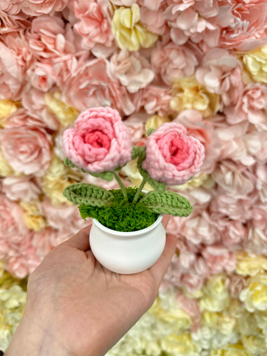 雙頭玫瑰針織小盆栽|畢業花束|畢業禮物|針織花束|企業禮品訂製|學校團體小禮物|公司紀念品|廣告贈品|禮品訂製|網上訂花|觀塘花店